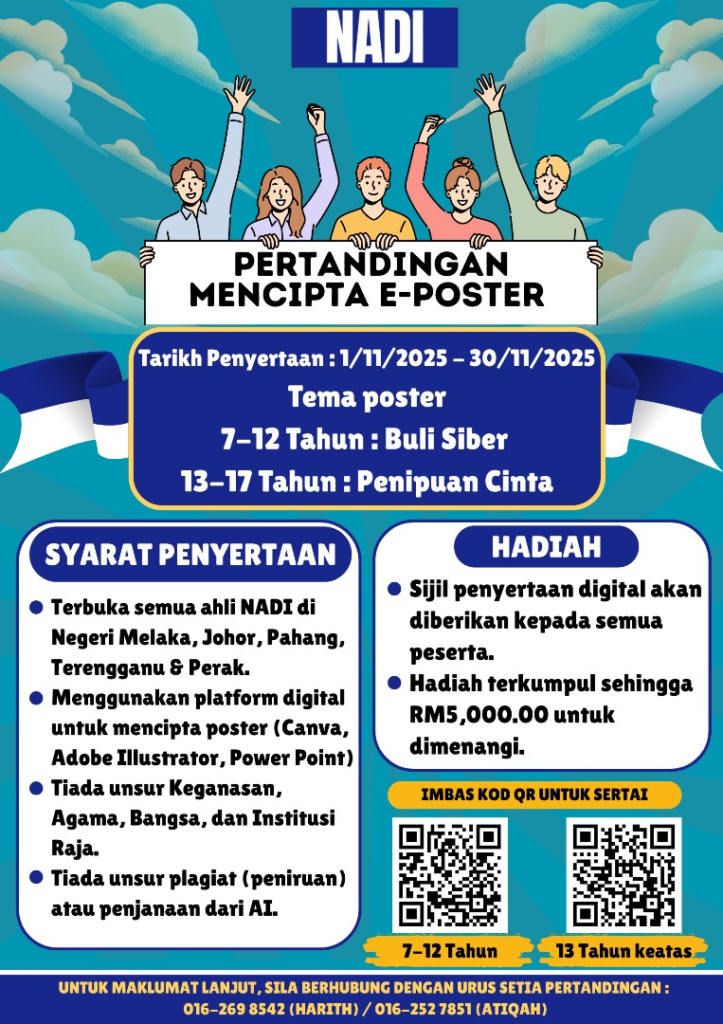 Jom sertai Pertandingan Mencipta E-Poster NADI yang akan berlangsung dari 1 hingga 30 November 2025!